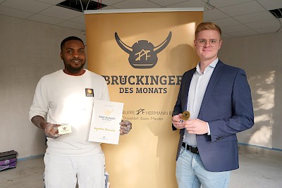 Wir freuen uns sehr, Augustine in unserem Team zu haben. Aktuell ist er erster Ansprechpartner auf einer Baustelle über fünf Mehrfamilienhäuser und die Arbeit dort läuft reibungslos. Malermeister Marius Dalhoff überraschte ihn vor Ort mit der Auszeichnung zum Brückinger des Monats September. Wir freuen uns mit Augustine und gratulieren herzlich!