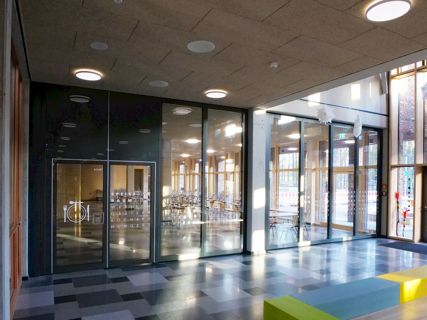 In enger Zusammenarbeit mit dem Münsteraner Architektenteam Hehn Scholz Pohl Architekten, der Schulleitung und dem Stadtentwicklungsbüro NRW Urban, entwickelte L+W ein visuelles Leitsystem für den Schulneubau.