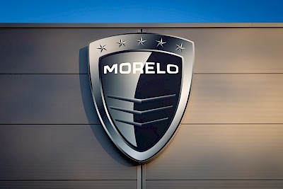 Die Licht- & Werbetechniker installierten zwei Logos der Premium-Wohnmobilmarke Morelo. Die eleganten Signets im Gran Format von drei Metern Höhe bestehen aus einem bedruckten PVC-Gewebe, das lichtdurchlässig ist und von hinten beleuchtet wird. Die Transparente sind auf einen lackierten Alu-Unterrahmen gespannt, doch durch das Licht entsteht ein optischer 3D-Effekt, der die Logos konvex gewölbt erscheinen lässt.