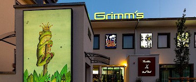 Bereits im Spätsommer 2023 wurde das Brückinger-Team bei der Planung des neuen Grimm's Hotels mit ins Boot genommen. So konnten alle Arbeitsschritte frühzeitig geplant und entsprechend vorbereitet werden. 2025 war es dann so weit: Das Grimm's Hotel in Hanau öffnete seine Türen und erstrahlt seitdem in modernster LED-Technik. Die Brückinger waren in den letzten Wochen vor der Eröffnung fleißig. Wie ein roter Faden ziehen sich die Märchen der Gebrüder Grimm – kreativ ausgearbeitet von verschiedenen Künstlern – durch die unterschiedlichsten Gewerke und Etagen. Und das nicht nur innerhalb des Hotels, sondern auch außen.
