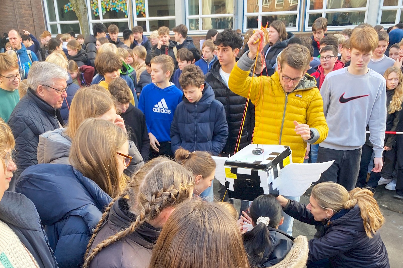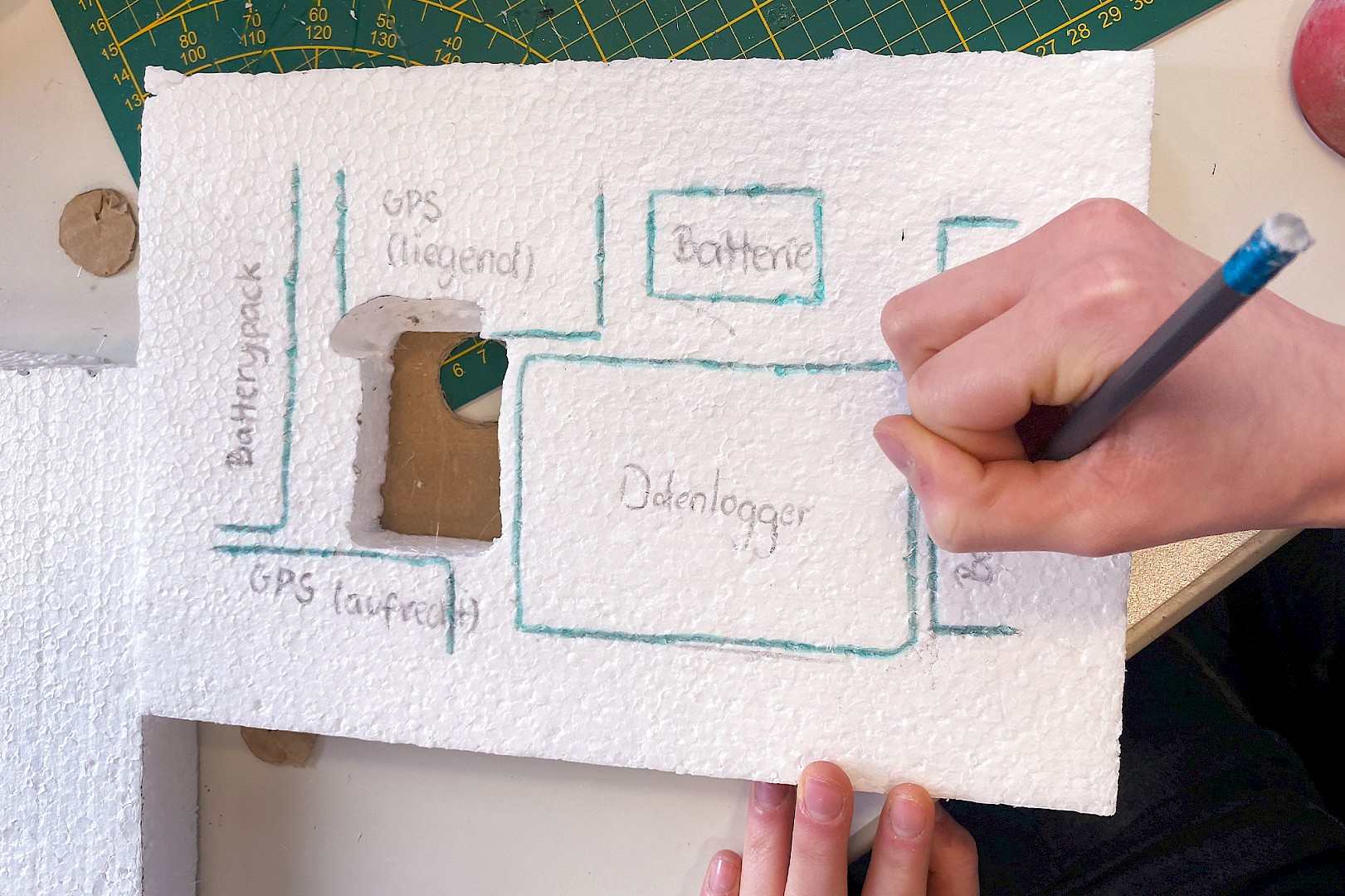 Die maximale Teilnehmerzahl von 24 Schülern war ruckzuck erreicht. Die jungen Forscher entwarfen und zeichneten zunächst die Konstruktionspläne, dann wurde die Forschungskapsel aus Styropor gefertigt. Nachdem der Starttermin wegen schlechten Wetters verschoben werden musste, war es am 25. Februar endlich soweit: