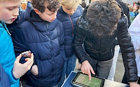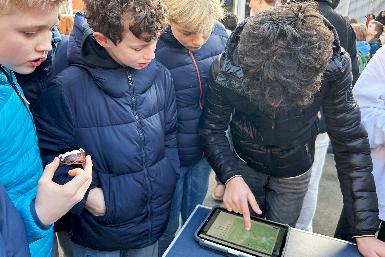 In der großen Pause hob der Ballon mitsamt der Forschungskapsel ab. An Bord: Messinstrumente, Kameras – und ein Schokokuss! Die Schüler wollten herausfinden, wie sich der Zuckerschaum bei Unterdruck verhält. Das junge Team hatte errechnet, dass der Ballon bei Kassel wieder niedergehen würde, genauso traf es ein. Mess- und Kameratechnik glitten mit einem Fallschirm zu Boden und wurden geborgen. Die Auswertung der Daten erfolgte im Unterricht.