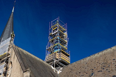 Die Renovierung des Hauptturmes ist bereits erfolgt (wir berichteten darüber). Nun war der Vierungsturm an der Reihe – ein nach oben konisch zulaufender Dachreiter oberhalb der Stelle, an der sich Längs- und Querschiff kreuzen.