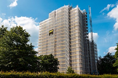 Hochhaus eingerüstet
