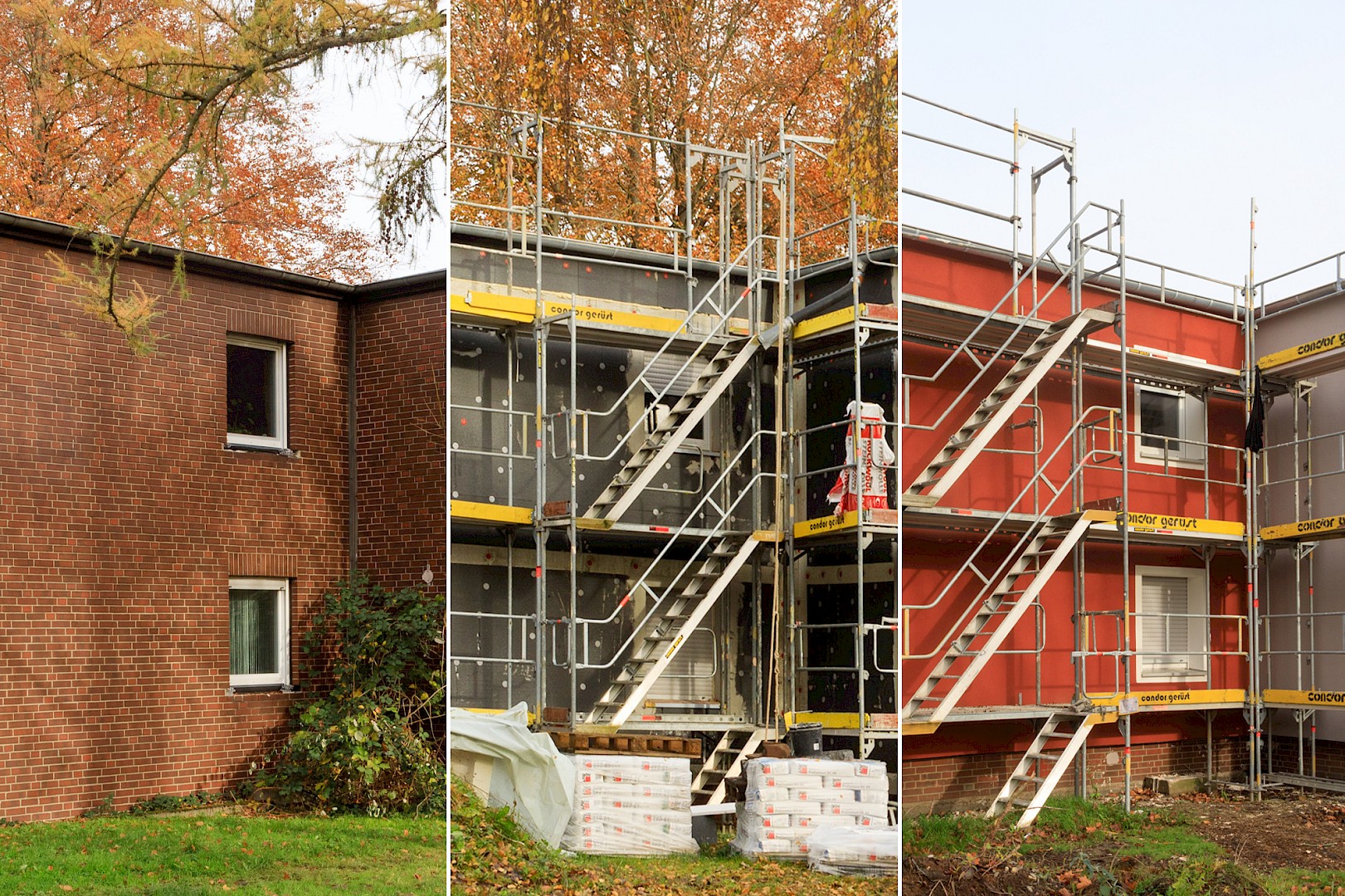 In Hamm, Lünen, Recklinghausen, Dortmund, Essen und Duisburg schlossen die Maler kürzlich mehrere Großaufträge erfolgreich ab. Die Objekte waren jeweils größere Mehrfamilienkomplexe aus der Wirtschaftswunder-Ära und dementsprechend in die Jahre gekommen. Vor allem war eine Anpassung an energetische Gebäudestandards nötig. Deshalb erhielten alle Häuser ein Wärmedämm-Verbundsystem (WDVS) zur Senkung der Energiekosten. Zusammengerechnet kamen dabei mehrere Bundesliga-Fußballfelder an Fassadenfläche zusammen. Frische Farbaufträge sorgen auch optisch für eine deutliche Aufwertung der Quartiere.