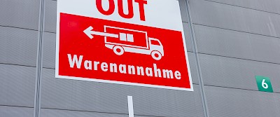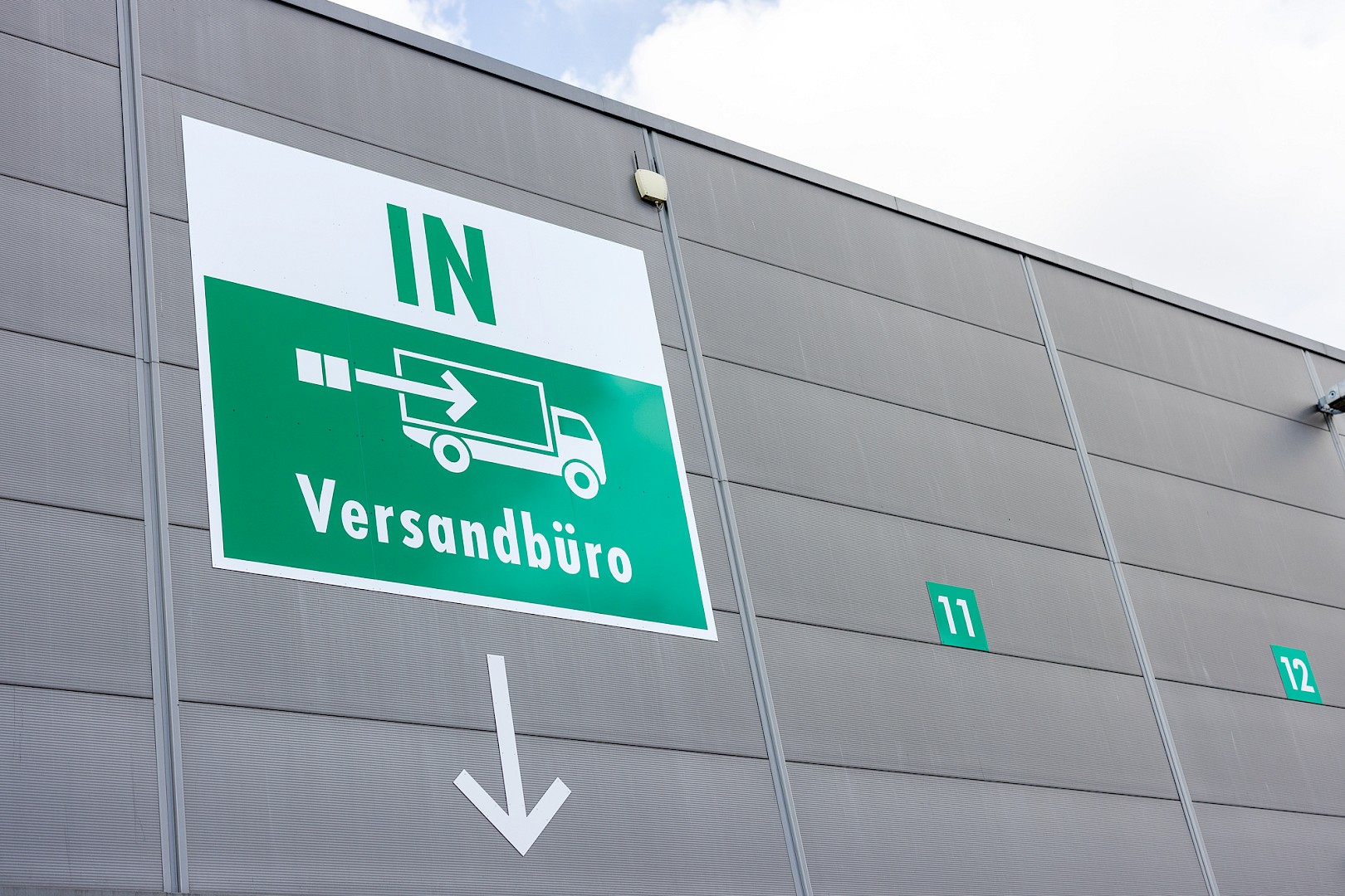 Hintergrund: Durch die zusätzliche Anmietung einer zweiten Halle am Standort Münster-Amelsbüren bestehen dort nun zwei Zufahrtsmöglichkeiten. Ein neues Leitsystem soll die Fahrer eindeutig orientieren. Dabei galt es zu beachten, dass bei den Speditionen viel internationales Personal beschäftigt ist.
