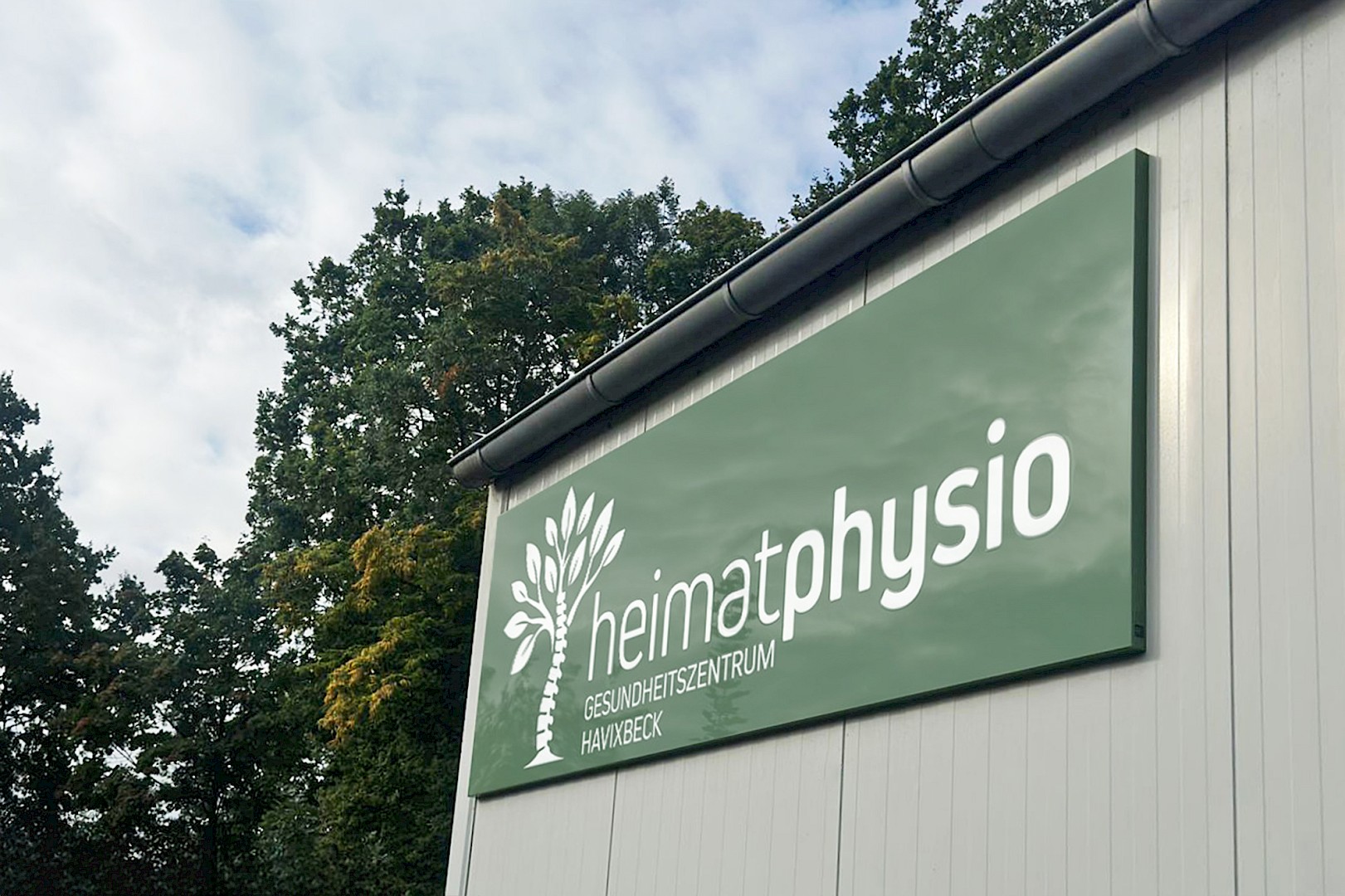 Das heimatphysio Gesundheitszentrum Havixbeck – ehemals Elithera – erstrahlt im Rahmen einer Geschäftsübernahme mit einem neuen Namen und frischem Erscheinungsbild. In Zusammenarbeit mit der Werbeagentur DREIKON, die das neue Corporate Design entwickelt hat, realisierten die Brückinger von Licht- und Werbetechnik Hermann Brück die Umsetzung vor Ort.